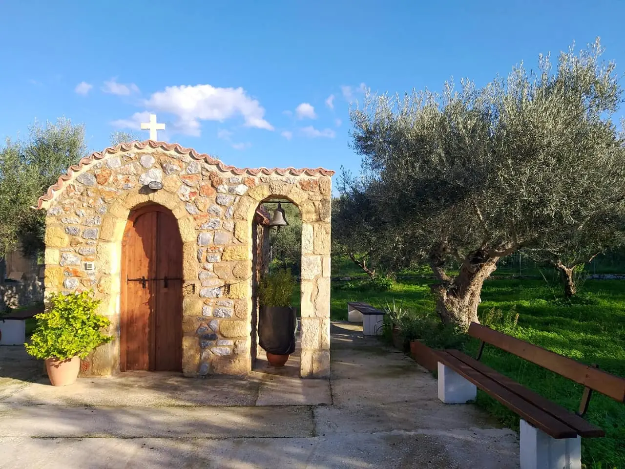 It is one of the most traditional villages in the area, featuring stone houses, beautiful churches including Agios Georgios, Agia Aikaterini, and the central church of Agios Charalampos, along with a picturesque central square. The village is situated close to various beaches with crystal-clear waters and sandy shores.